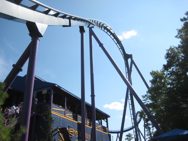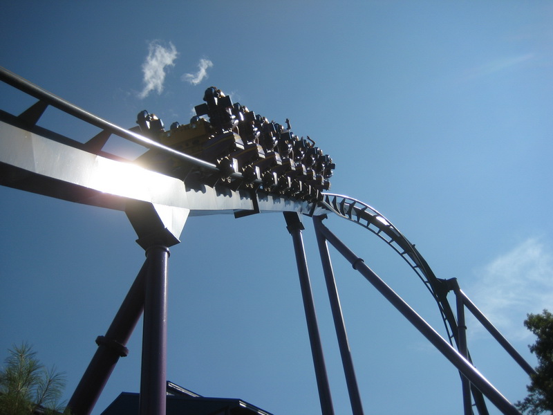 Bizarro (Formally Medusa) — 3rd most Inversions in the World with 7 Inversions including Loop, Dive Loop, Zero-G Roll, Cobra Roll & Interlocking Corkscrews.